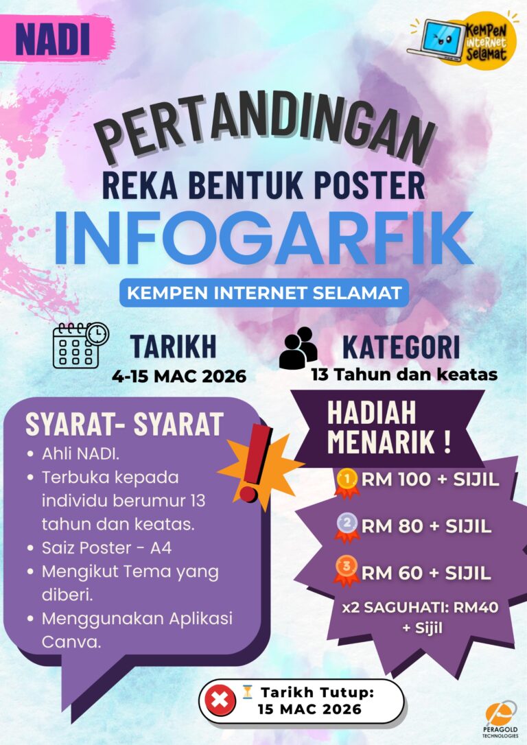 Pertandingan Reka Bentuk Poster: Kempen Internet Selamat. Butiran program seperti di bawah: 2 KATEGORI:1. KATEGORI 12 TAHUN DAN KE BAWAH2. KATEGORI 13 TAHUN DAN KE ATAS TEMPOH PERTANDINGAN4 Mac 2026 – 15 Mac 2026 TEMA POSTER BAGI 12 TAHUN DAN […]