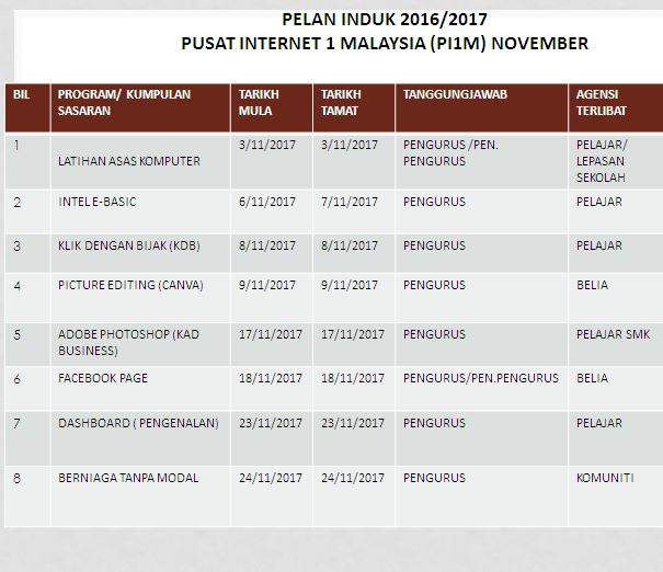 JADUAL LATIHAN & AKTIVITI NOV 2017