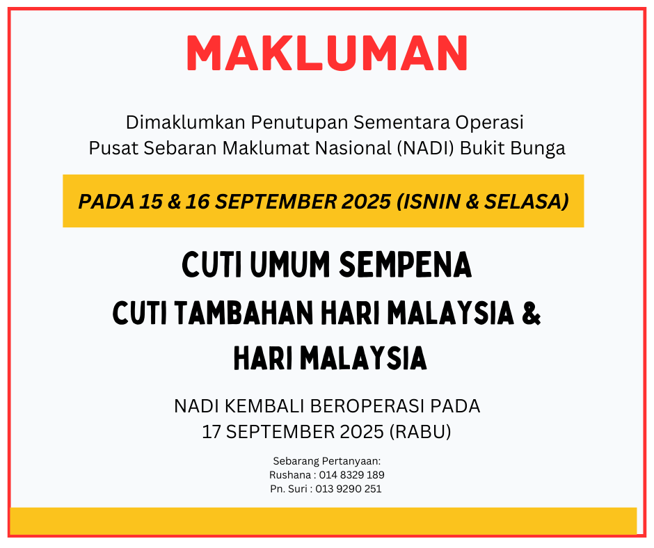 MAKLUMAN PENUTUPAN SEMENTARA NADI BANDAR BARU BUKIT BUNGA PADA: